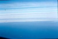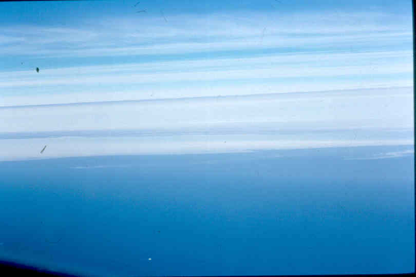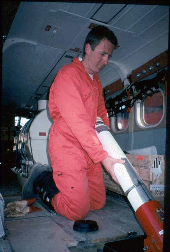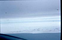 After fuelling at Fossil Bluff at 1200 we headed west at 12000 feet with 8/8 cloud tops below us. However this cleared further west and we approached the first drop area at 1415 with the ice edge clearly visible ahead. Unfortunately, on crossing the edge, the pack was seen to consist of a compact mass of small (10-20m) floes with a lot of brash in between - we estimated 50% solid ice and 50% brash/open water. We continued for 30 mins (60 nm) but there was little change in conditions. As we were approaching our "point of no return" we decided to make the first drop. CALIB 21388 was deployed at 1810 UTC at 70 53S, 87 23W from 1000'. We then turned for our return flight and deployed CALIB 21384 at 70 57S, 87 03W at 1825 UTC. We attempted to confirm that these drifters had landed on floes, but were unsuccessful due to poor contrast (8/8 cloud overhead).
